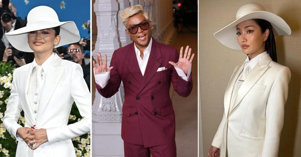 The coincidence centered on tailored white suits paired with wide-brimmed hats, creating a mirrored effect between the two arrivals. One ensemble was a custom creation by a major European fashion house, styled for a globally recognized actress known for her fashion influence. The other, worn by a rising star, hailed from a different iconic designer.